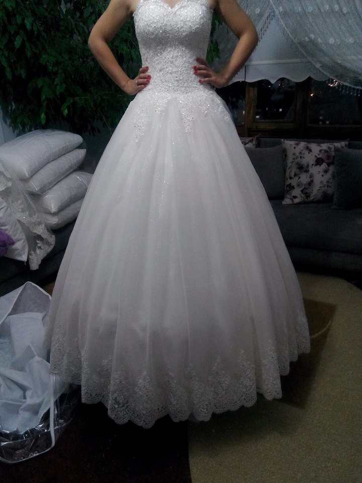 Gelinliğimiz beyaz gelinlik modelidir. Kabarık tasarlanmış olan bir gelinlik modelidir. Bel kısmındaki işlemeler gelinliğe şık bir görünüm kazandırmıştır.